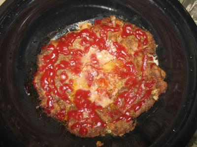 10:00 am—meat mixture—put in bottom of Hot Pot and make very even and relatively thin even if it goes up the sides of the pot. You don’t want a thicker spot in the middle, because that spot will have a hard time getting done without drying out the edges. Your “meatloaf” will be shaped more like a bowl, but who cares as long as it tastes good! (Maybe I should have named this recipe Megasun Meatbowl. LOL)