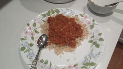 Once I cooked up the lentils, I served it on top of rice. It reminds me of a nice Indian dish.